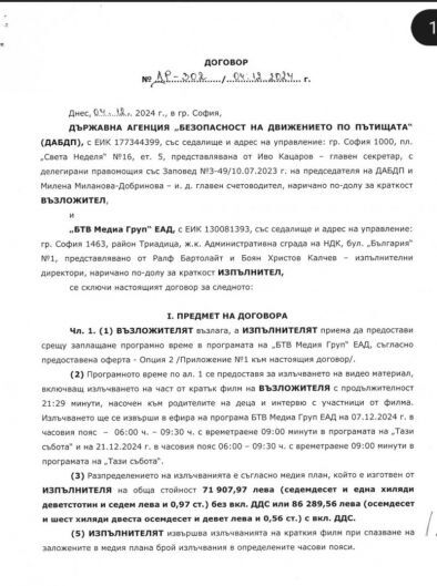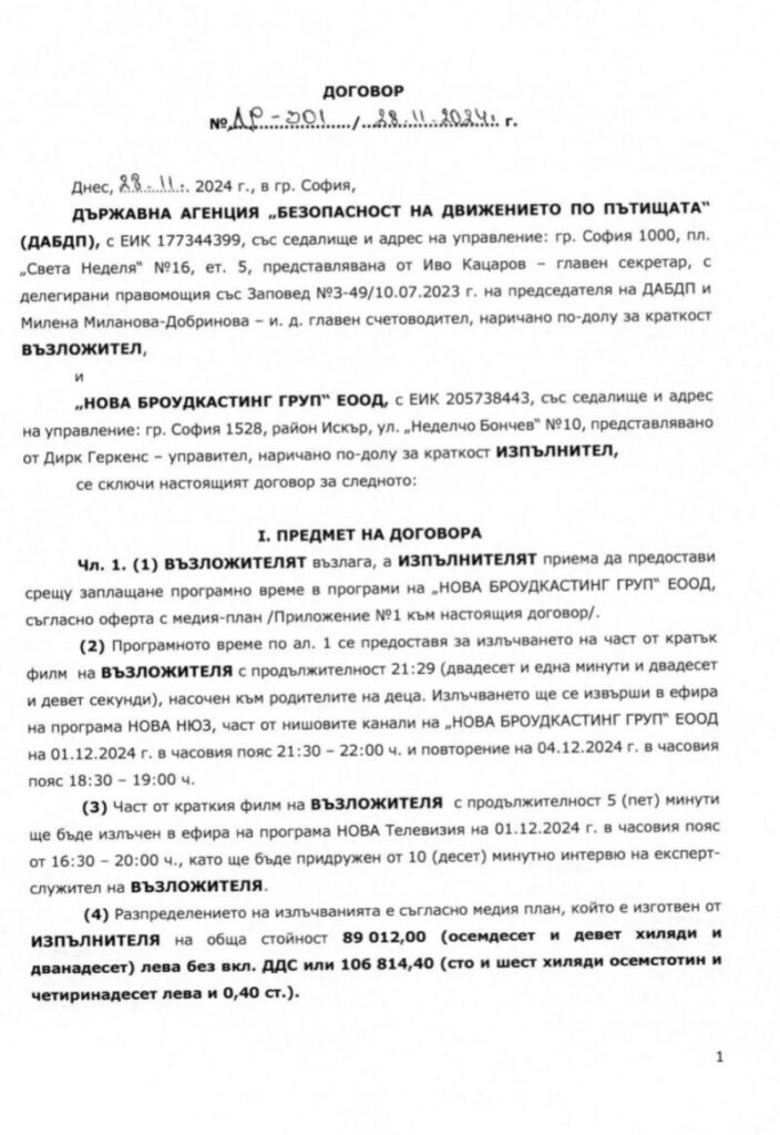 ДАБДП от април 2024 г. до днес е ПЛАТИЛА 479 681,11 лв. на БТВ, Нова ТВ и няколко радиостанции за медийно отразяване и излъчване на тематично филмче с продължителност 21 минути.