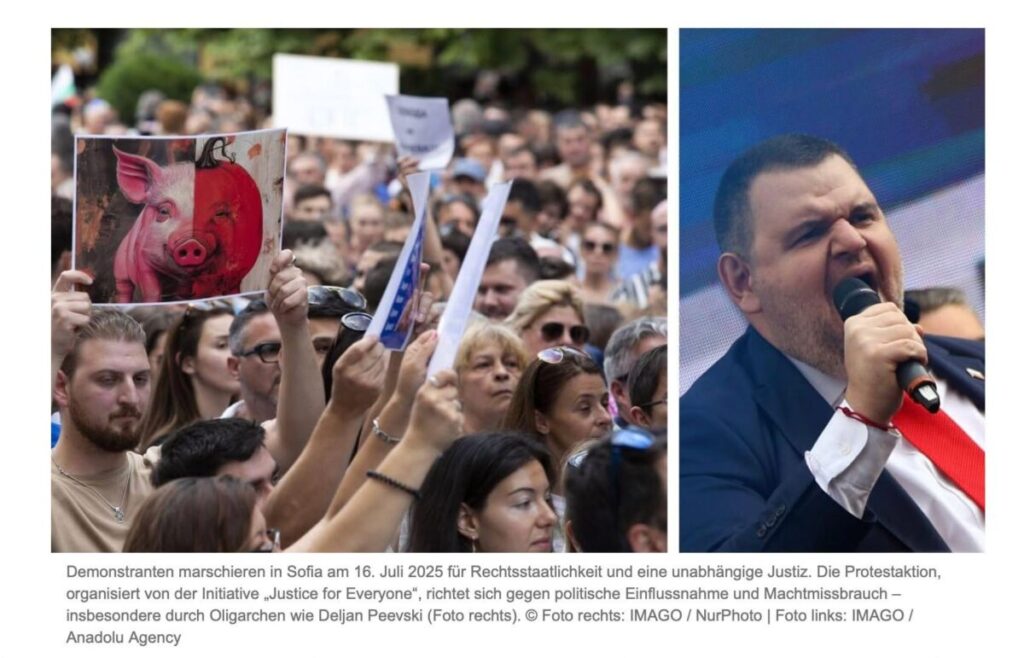 Общественото недоволство расте – нови вълни от протести из София и други градове обвиняват Пеевски и ГЕРБ в задкулисно управление и корупция. Протестиращите искат ограничаване на влиянието на „санкционираните по закона Магнитски“ фигури в държавата.