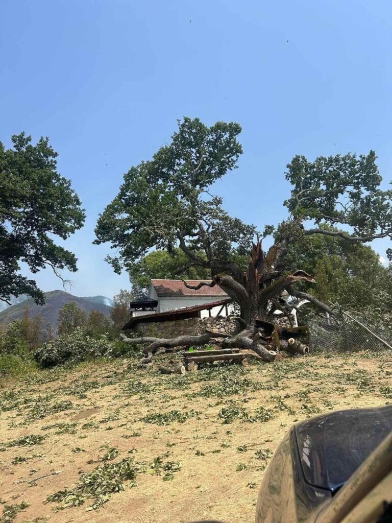Снимка на изгорелия 600 годишен дъб в Трън – той ще бъде превърнат в хиляди сувенири, които ще напомнят за безхаберието на държавата: