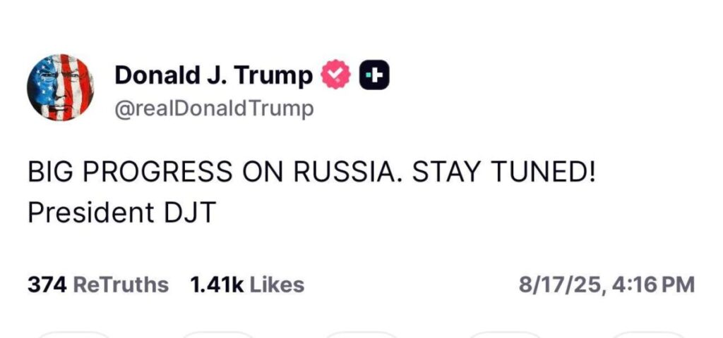 “Невероятно е как фалшивите новини насилствено изопачават ИСТИНАТА, когато става въпрос за мен. НЯМА НИЩО, което мога да кажа или направя, което би ги накарало да пишат или да докладват честно за мен. Имах страхотна среща в Аляска относно глупавата война на Байдън, война, която никога не трябваше да се случва!!!”