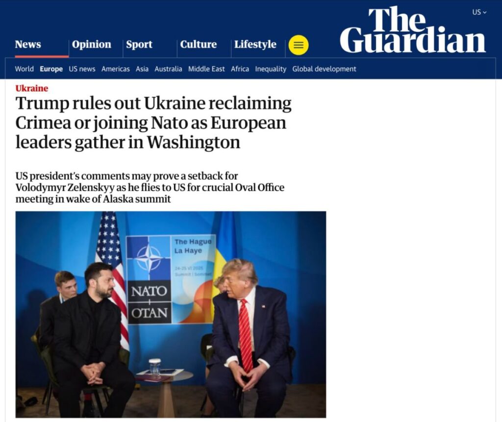 „Гардиън“ пише: Доналд Тръмп изключи възможността за връщане на Крим на Украйна или за присъединяването му към НАТО.