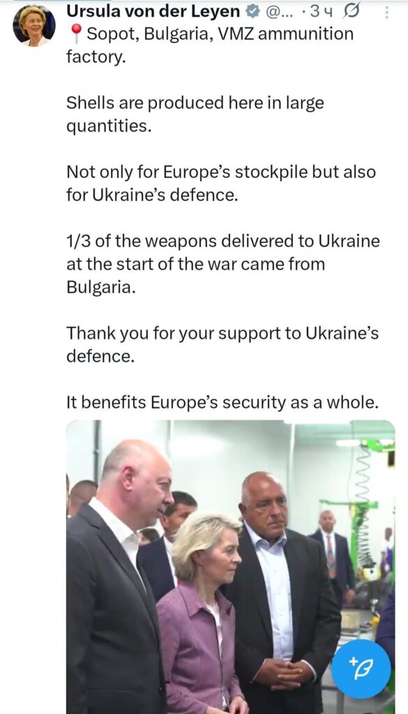 Че България дава и продава оръжие на Украйна е факт, който никой нормален нямаше нужда да чува Урсула, че да го разбере.