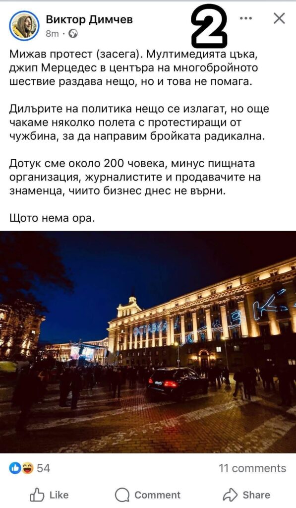 Долу в картинки са двама инфлуенсъри с лъжите си от протеста – 1. Симо Тека (На Шиши) и 2. Виктор Димчев (ГЕРБ). Тека и Димчев лъжат гнусно и манипулират, защото така е наредено на слугите от Мафията.