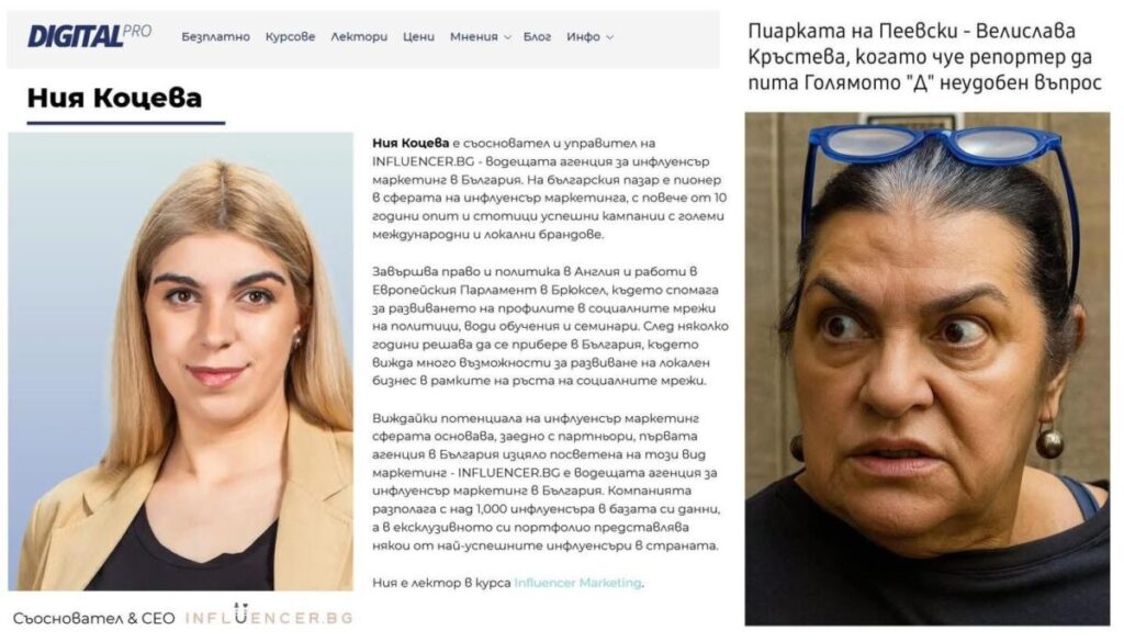 Разследване на BIRD установи, че Пеевски опитва да пазарува инфлуенсъри на килограм, както си купува говорещи глави из нюзкурниците по телевизиите – като Мадам В, Магарето Алгафари, Дияна Дамянова, новият Галъп, Цветанка Андреев и други.