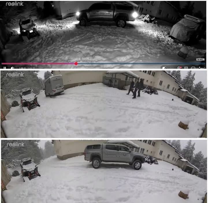 • Същият автомобил се връща в хижата около 13:54 ч. Не се вижда кой слиза от него, но се вижда, че паркира на заден ход към гаража и след това оттам идват трима души и куче.