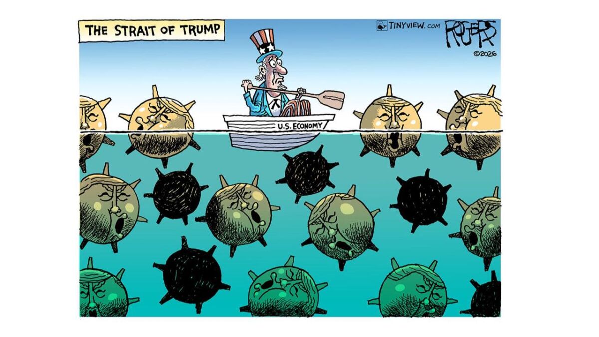 IRIB News публикува карикатура „Проливът на Тръмп“ от художника Роб Роджърс с надпис: