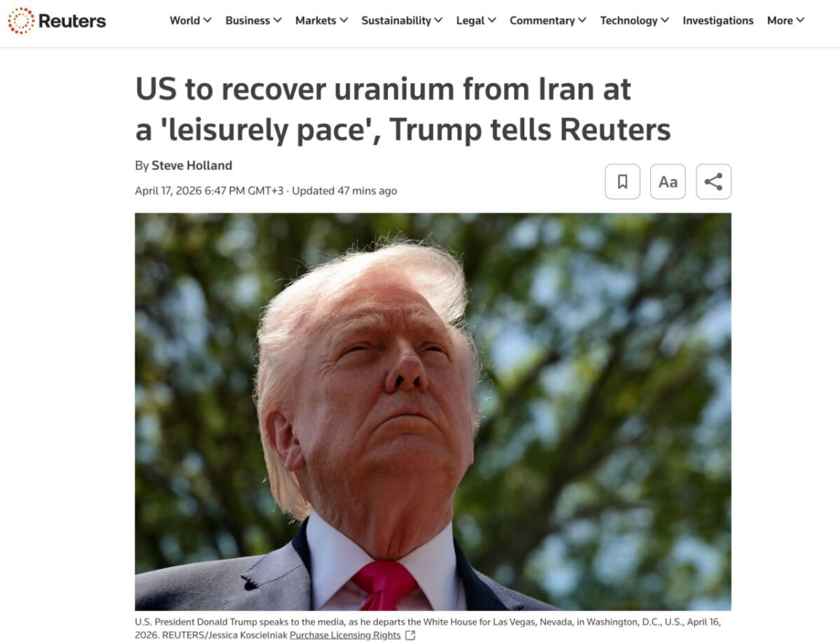 В интервю за Ройтерс, Доналд Тръмп заяви, че Вашингтон възнамерява да работи с Иран за извличане на обогатен уран и транспортирането му до Съединените щати.
