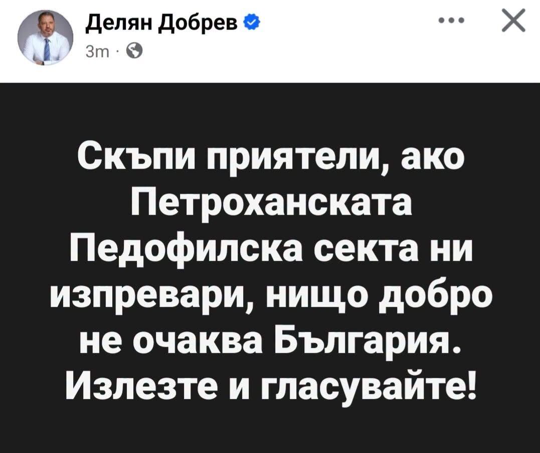 Делян Добрев от ГЕРБ си изпусна нервите и показа уплах със следния пост: