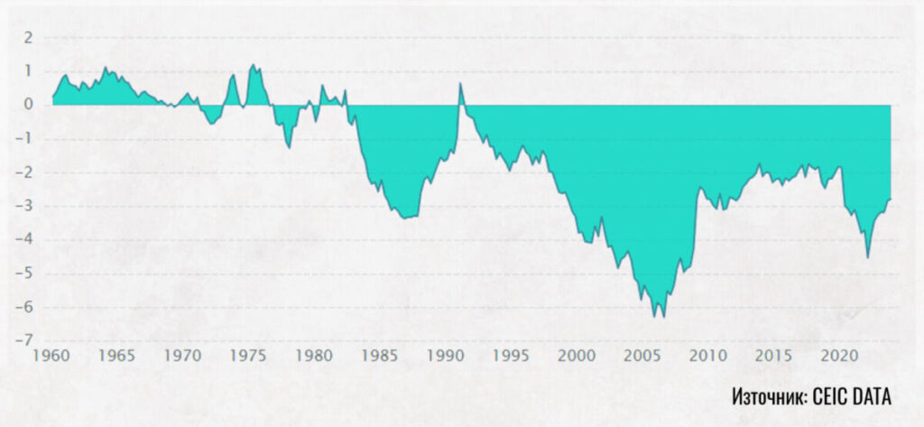 2. Дефицити по текущата сметка (когато вносът надхвърля износа)