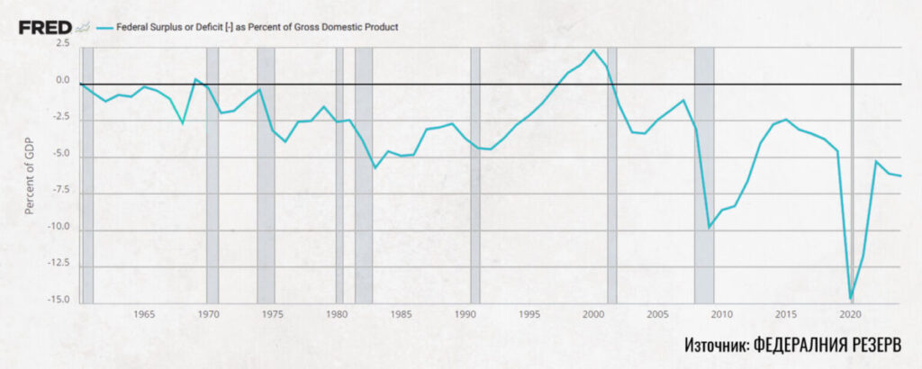 Графика 3: Бюджетен дефицит на САЩ като процент от БВП