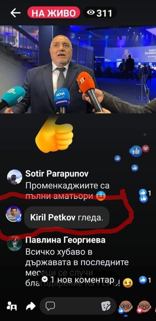 Оказа се, че прякото включване на Борисов по фейсбук е гледано от Кирил Петков, който се озърта за последствията от днешните им сцени в парламента.
