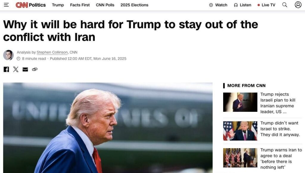 Доналд Тръмп е изключително скептичен към идеята Съединените щати да се намесят в конфликта между Израел и Иран, съобщава CNN.