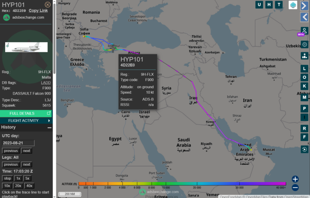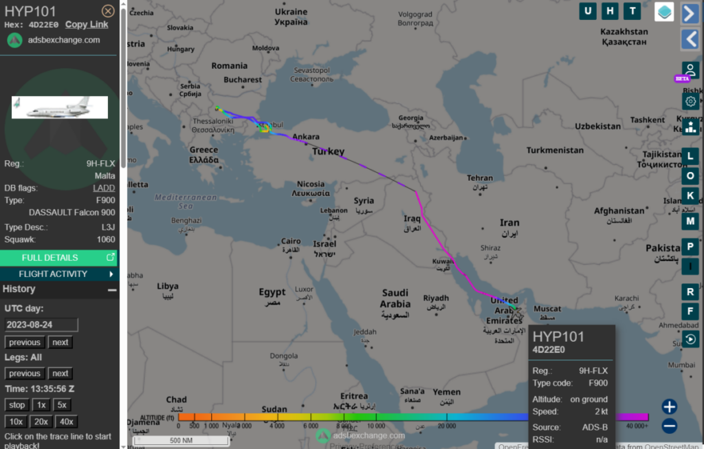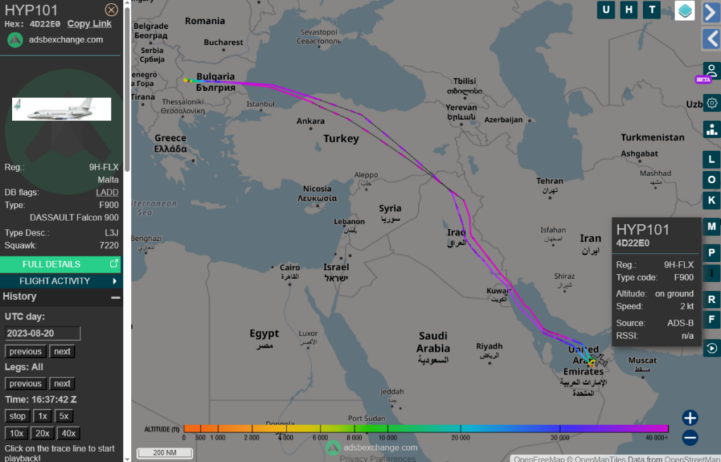 По-интересното е, че Пеевски лети до Малдивите от 8 до 14 август, а после се прибира в София и на 16 август за убийството на Алексей Петров Пееевски си е тук. Три дни по-късно – на 20 август Пеевски лети спешно за Дубай – само за 48 часа – вероятно за среща с Таки. На кацане на летище София с Пеевски в самолета на 23 август сме заснели пилотите на Делян Пеевски от частния му екипаж.