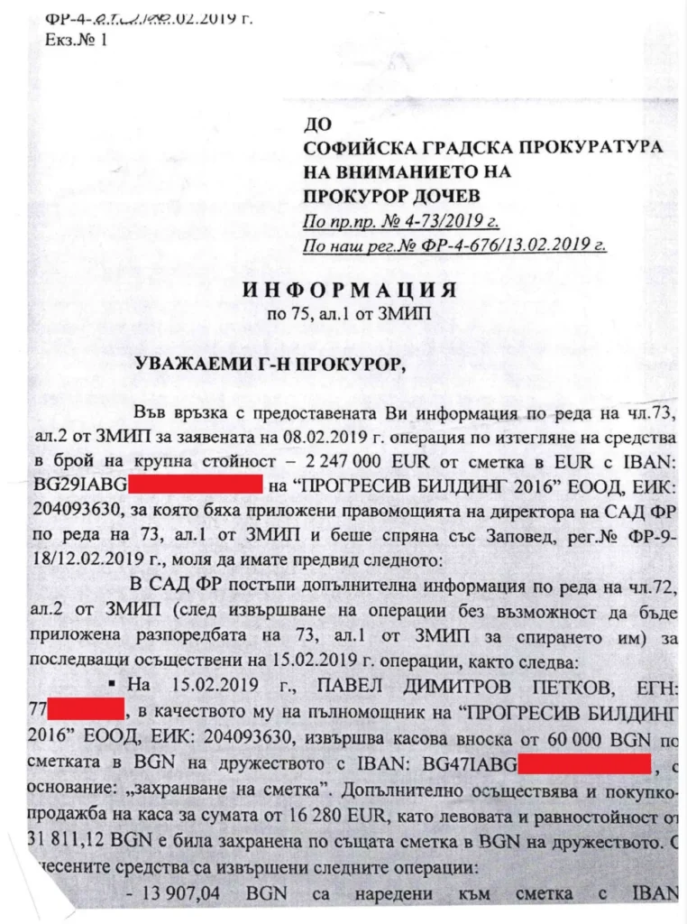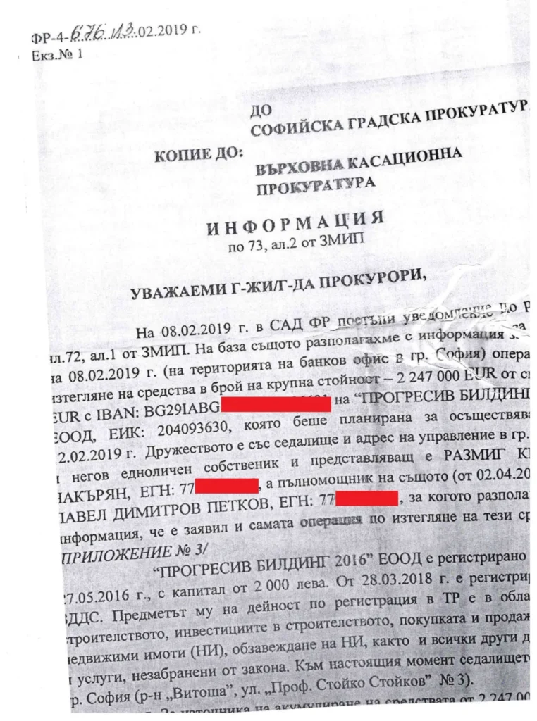 След сигнала от ДАНС – Финансово разузнаване СГП образува дело, прави искане за запор на парите до Софийски градски съд и то е уважено.