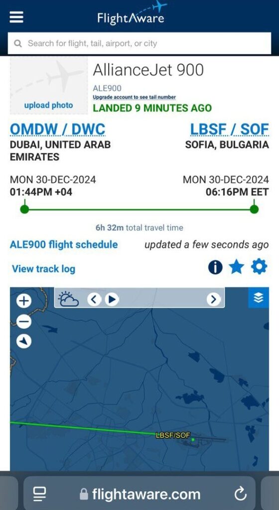 Как кацна Фалкона с Пеевски на борда тази вечер от Дубай на летище София: