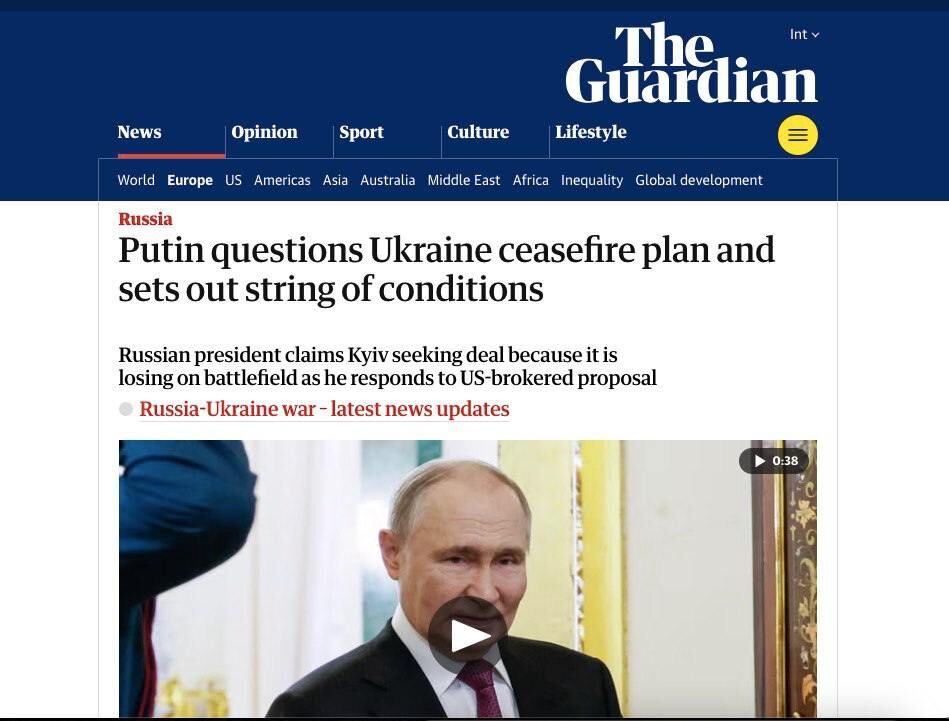 🟥The Washington Post: „Путин не подкрепя напълно предложението на САЩ за прекратяване на огъня в Украйна“;
