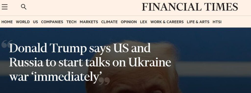 Неслучайно Тръмп се е обадил първо на Путин и едва след това на Зеленски, твърди Financial Times. Според изданието президентът на САЩ е искал да предаде на Украйна и европейските страни, че Вашингтон иска сам да реши проблемите с Москва.