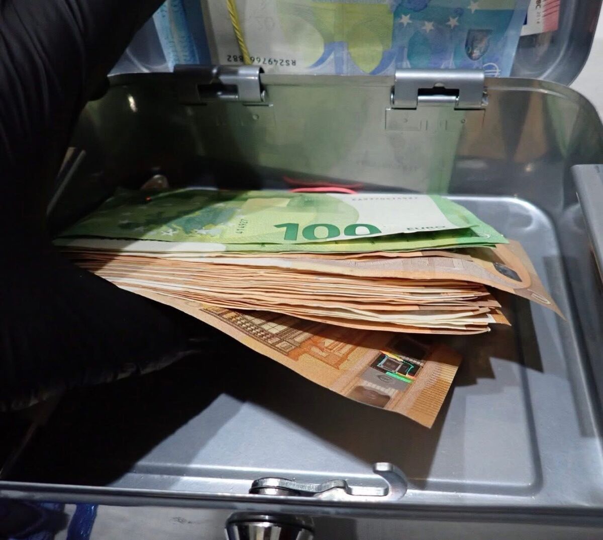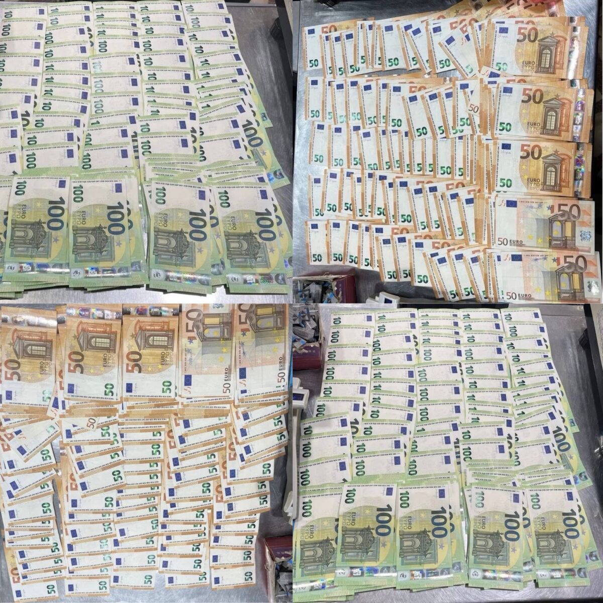 В метална каса е открита парична сума в размер на 20 000 евро. В офис към търговския обект са намерени още 1 715 евро.