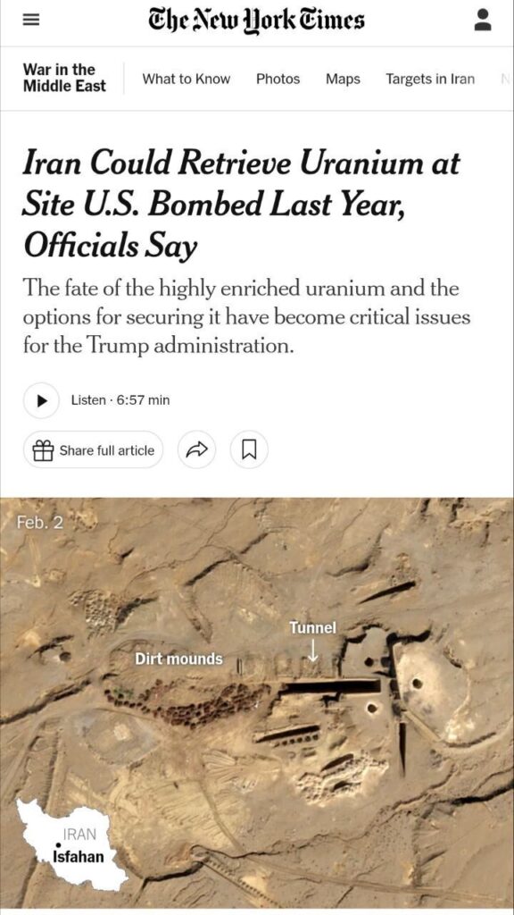 The New York Times: Американското разузнаване се опасява, че Иран може да се опита да извлече уран от развалините в Исфахан.