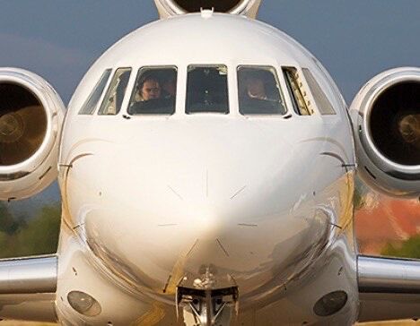 Самолетите на Пеевски с обозначителните номера и пилотската кабина на единия Фалкон с неговите пилоти.