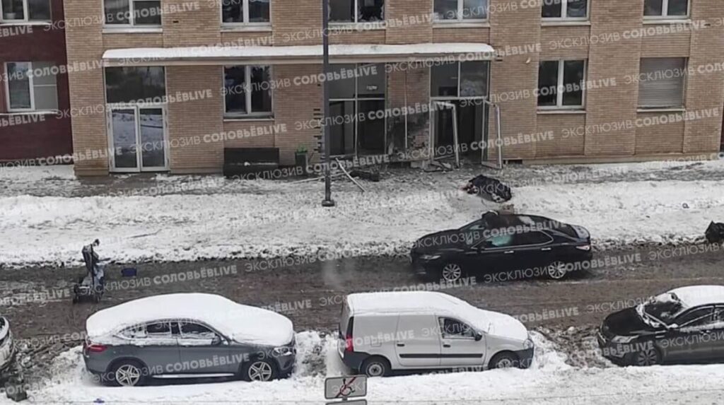 В руски канали в приложението „Телеграм“ бяха публикувани снимки, на които се виждат отломки от разрушен вход на сграда и две тела, лежащи на снега пред нея, който е обагрен от кръв.
