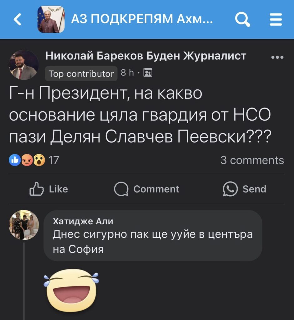 Първи тази суттрим въпросът посрави Николай Бареков директно към принципала на НСО пред фб страницата “Аз подкрепям Ахмед Доган”:
