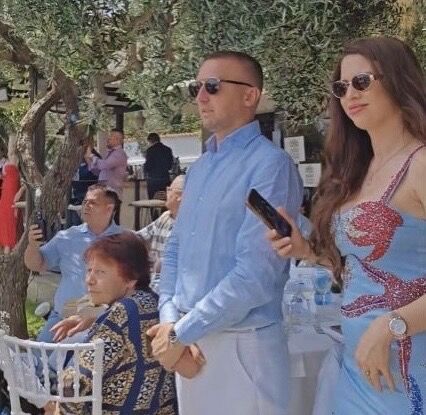 (На снимката кметът от Ново Начало на селската помашка община Белица Ради Ролекса с жена си на гръцка сватба на издателя от пеевските медии Васил Петев (Медиамол). Ревански е личния ковчежник на Шишкото, ходи с 30 души охрана и осигурява фантоми за изборите и контрапротестите на Пеевски.)