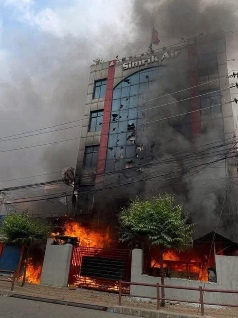 Президентският дворец на Непал е напълно обхванат от пламъци. Според съобщенията в сградата са се помещавали ключови офиси и ведомства, включително кабинетите на премиера. Всички важни документи са изгорели, съобщава местният портал Online Khabar.