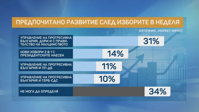 „В тази картина, която наблюдаваме, има 15%, които все още не са решили за кого ще гласуват. Около 90% колебаещите се до момента се насочват към „Прогресивна България“, уточни социологът.