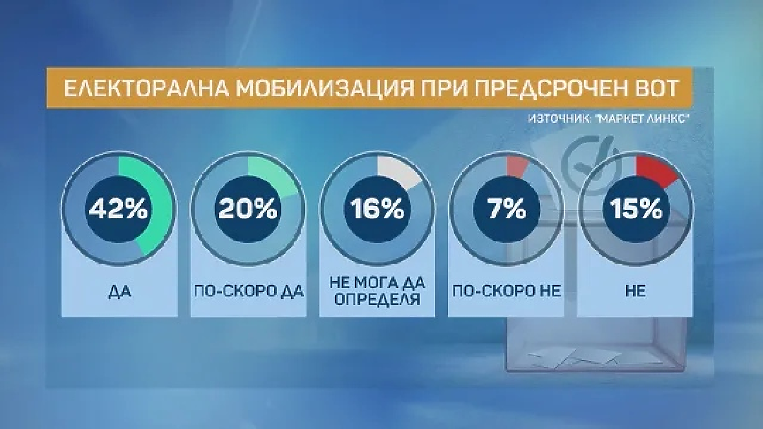 Декларираната избирателна активност е 42 на сто, обяви още Живков, но направи уговорката, че проучването е правено в разгара на летния сезон и предизборната кампания все още не е започнала.