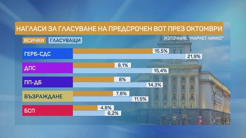 “Маркет линкс“ отчита мобилизация сред електората на Движението, което от трето място при последните измервания се връща на второ, където беше след последните избори. Активът на Ахмед Доган от месеци обикаля страната и това мобилизира структурите с кампанията “ДПС без Пеевски”.