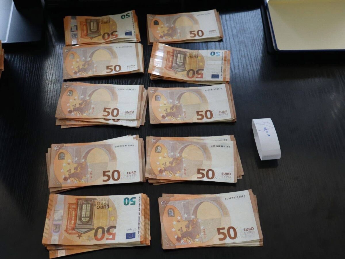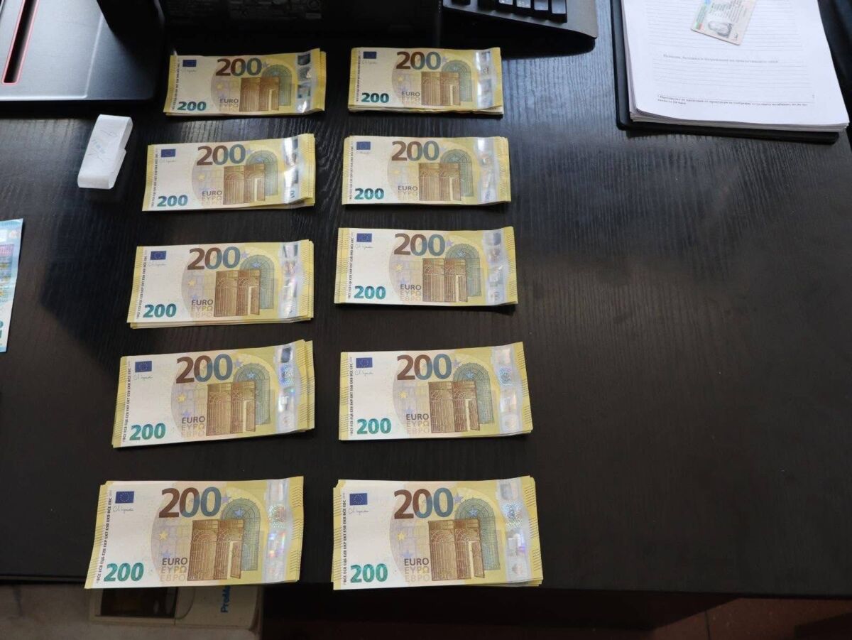 Мъжете са проследени и задържани на паркинг на голяма търговска верига. Парите – теглени в брой и тъпкани в раници.