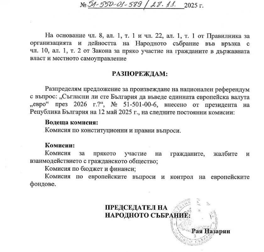 Ще прекратят процедурата в парламата на 14.01.2026 с мотива, че вече сме въвели еврото и референдума е без предмет!
