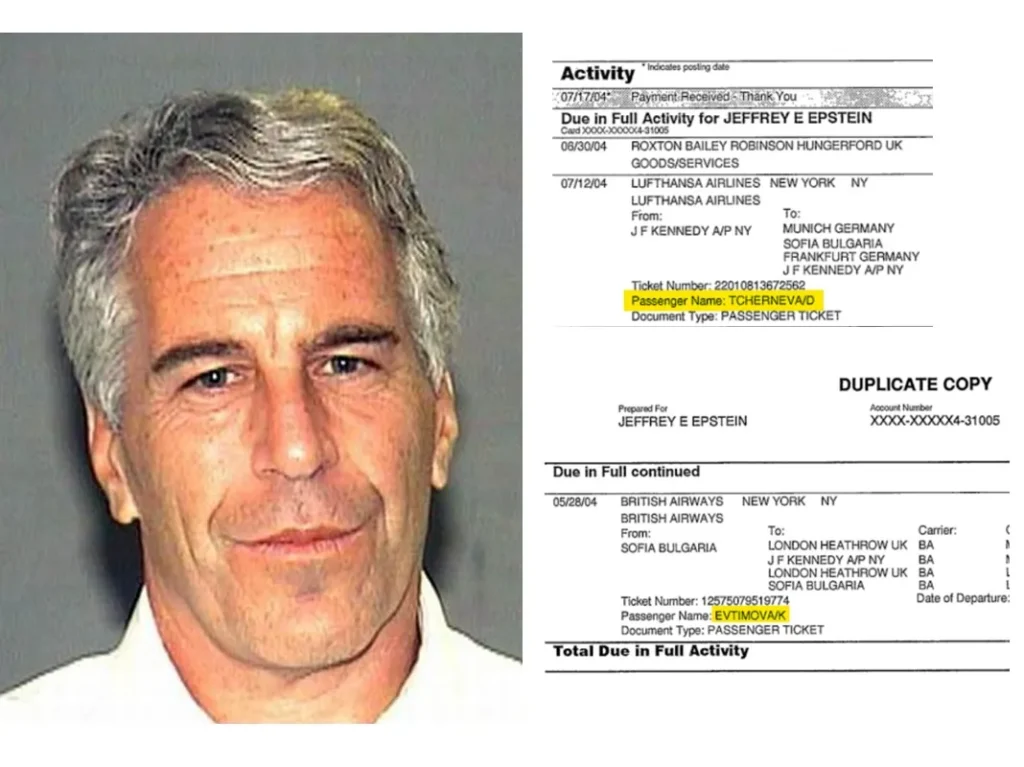 Според документите Джефри Епстийн е купил самолетни билети от София, България, до Ню Йорк, САЩ и обратно на две пътнички с български фамилни имена– Д.Чернева и К. Евтимова.