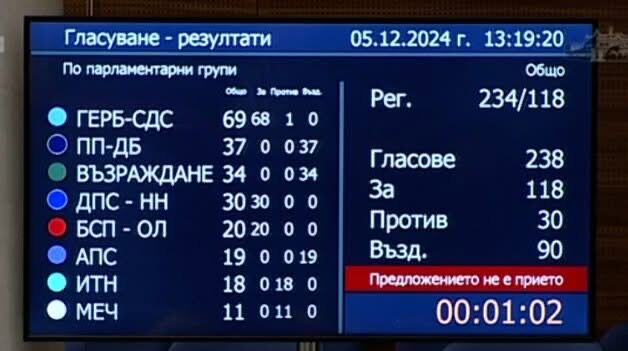 По-рано днес, при десетия опит, нито един от двамата кандидати, които стигнаха до балотаж – Наталия Киселова и Силви Кирилов, не бе избран за председател на 51-вото Народното събрание. По време на втория тур кандидатурата на доц. Киселова, издигната от „БСП-Обединена левица“, бе подкрепена от 89 народни представители, 60 – гласуваха „против“, а 88 – с „въздържал се“. След процедура по прегласуване Киселова получи подкрепа от 118 депутати (ГЕРБ плюс 30 от Новото начало и 20 от БСП), против бяха 30, въздържаха се 90 народни представители.