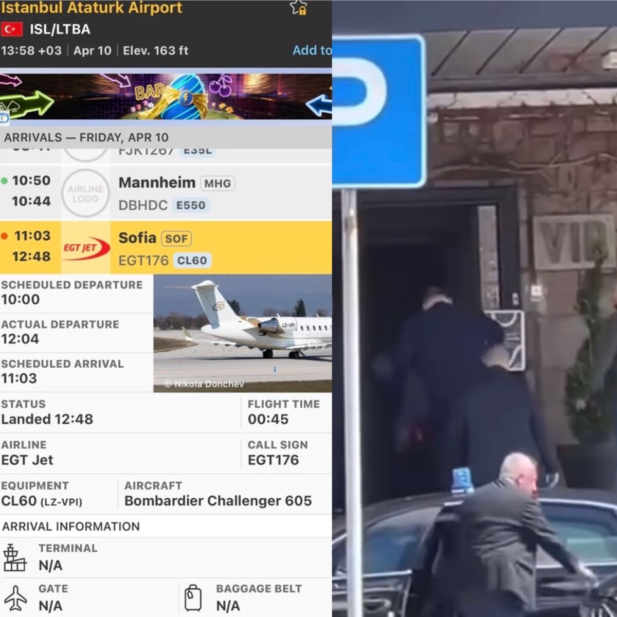 Днес Пеевски вероятно е използвал частен самолет на друг известен българин, защото по същото време от Летище София излетя към Истанбул частният Bombardier Challenger 605