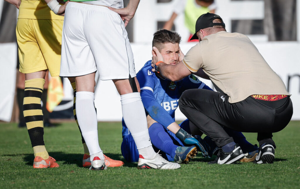 Вратарят на Ботев Даниел Наумов беше ударен с бутилка в главата и не беше в състояние да продължи да играе!
