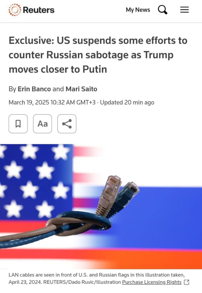 Агенцията за национална сигурност на САЩ спря усилията си за противодействие на руския саботаж, дезинформация и кибератаки, намалявайки натиска върху Москва, докато администрацията на Тръмп се опитва да я убеди да прекрати войната си в Украйна.