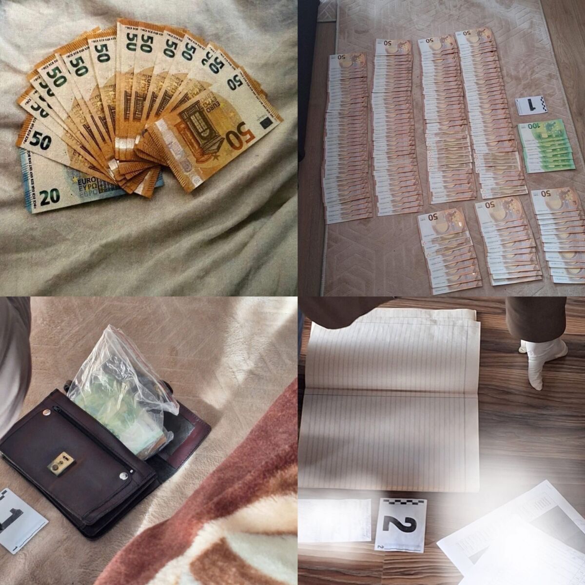 При претърсване на две жилища са открити 3620 евро, както и множество списъци с имена на лица.