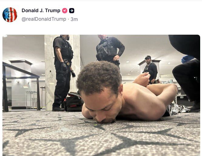 Той също така сподели снимка отблизо на предполагаемия заподозрян на пода, след като е бил заловен.
