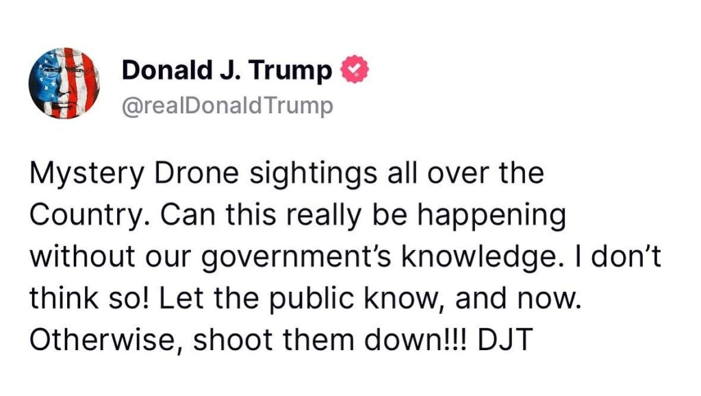 Доналд Тръмп на свой ред призова за сваляне на БЛА, забелязани над Съединените щати: